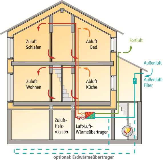 Eine kontrollierte Wohnungslüftung ist aus hygienischen Gründen erforderlich.