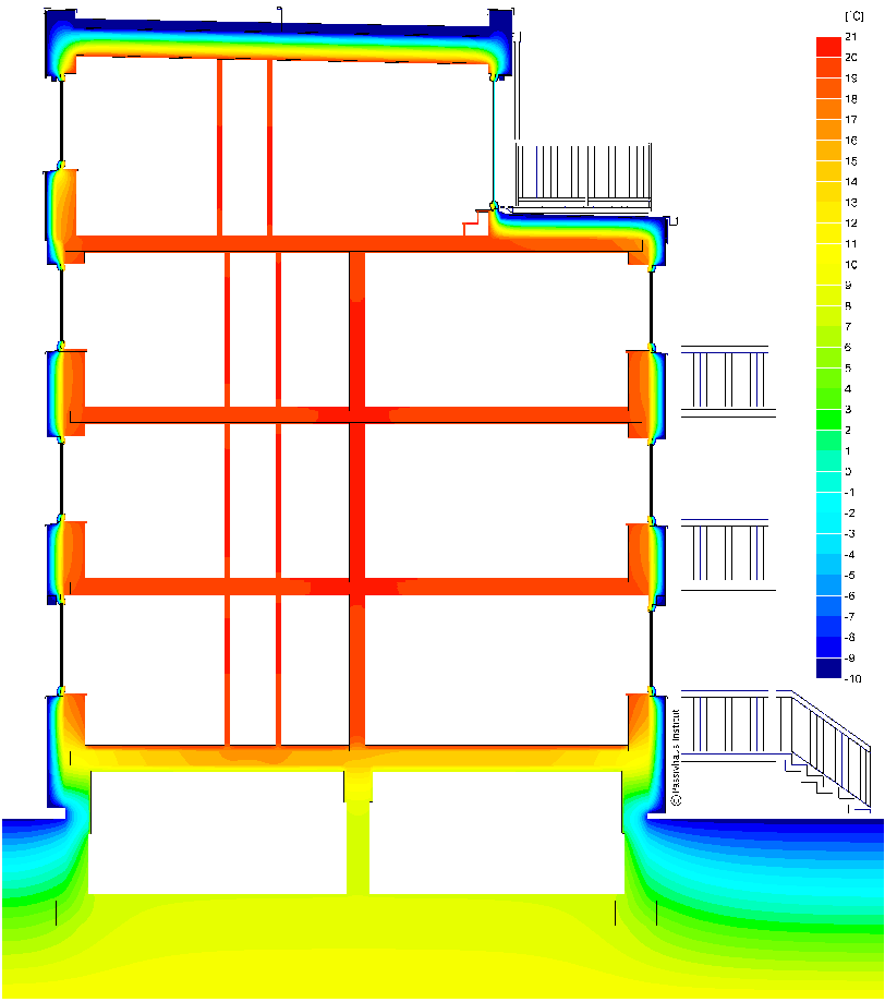 Ein interessantes Ergebnis unserer Forschungen ist, dass in supergedämmten Konstruktionen Wärmebrücken vollständig vermieden werden können. Wärmebrückenfrei ist eine Konstruktion dann, wenn der Wärmeverlust der Regelflächen – mit dem Außenmaß berechnet – den gesamten Wärmeverlust nicht übersteigt. Für die ersten Demonstrationsgebäude wurden alle Anschlüsse mit zweidimensionalen Wärmestromberechnungen sorgfältig optimiert. Der Bau ohne Wärmebrücken war schon beim ersten Demonstrationsgebäude erfolgreich. Inzwischen wurden etwa 50 Bausysteme verschiedener Art als Passivhaus geeignet und rundum wärmebrückenfrei zertifiziert.