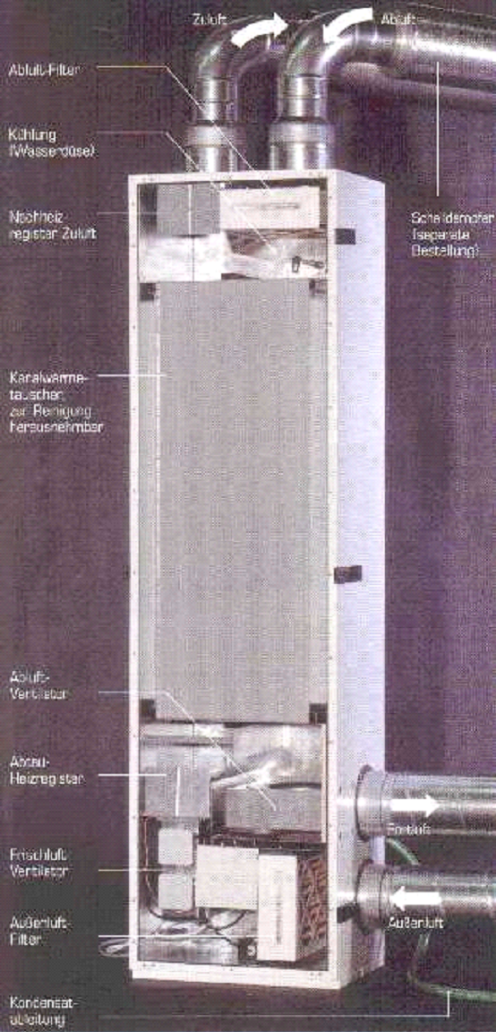 Abb. 7: Hocheffiziente Lüftungswärmerückgewinnung mit Gegenstromwärmetauscher und elektronisch kommutierten Gleichstromlüftern