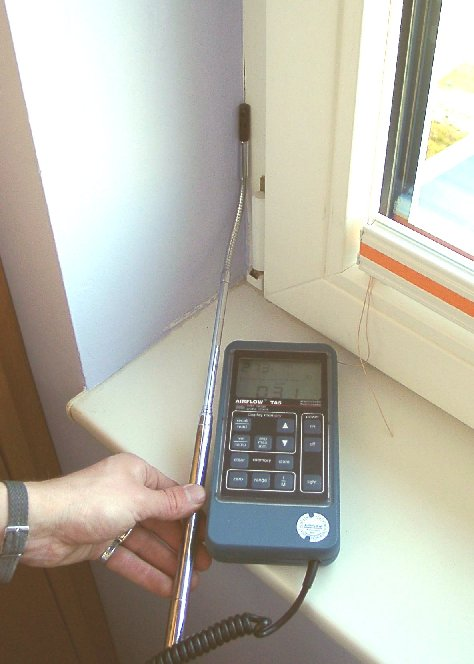 In order to check the airtightness of a building, it is useful and advisable to carry out an airtightness measurement known as the BlowerDoor test. This is absolutely essential for Passive Houses. Any leaks remaining in the building envelope can be detected with this test and remedied if necessary. This test is one of the few possibilities for testing the quality of construction work in a cost-effective way. During the test a fan is installed airtightly in a window or door. Leak detection takes place at a negative pressure of 50 Pascal inside the building. The leaks can be localised by means of the hand or a flow meter, or by using an infrared camera in inaccessible places.