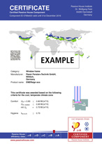 All criteria can be expressed by using measurable quantities and tested by using established methods. The specific values of the respective products which are relevant for the energy balance, as well as those for determining comfort, have been given in the certificate. These can thus be entered directly into the PHPP.